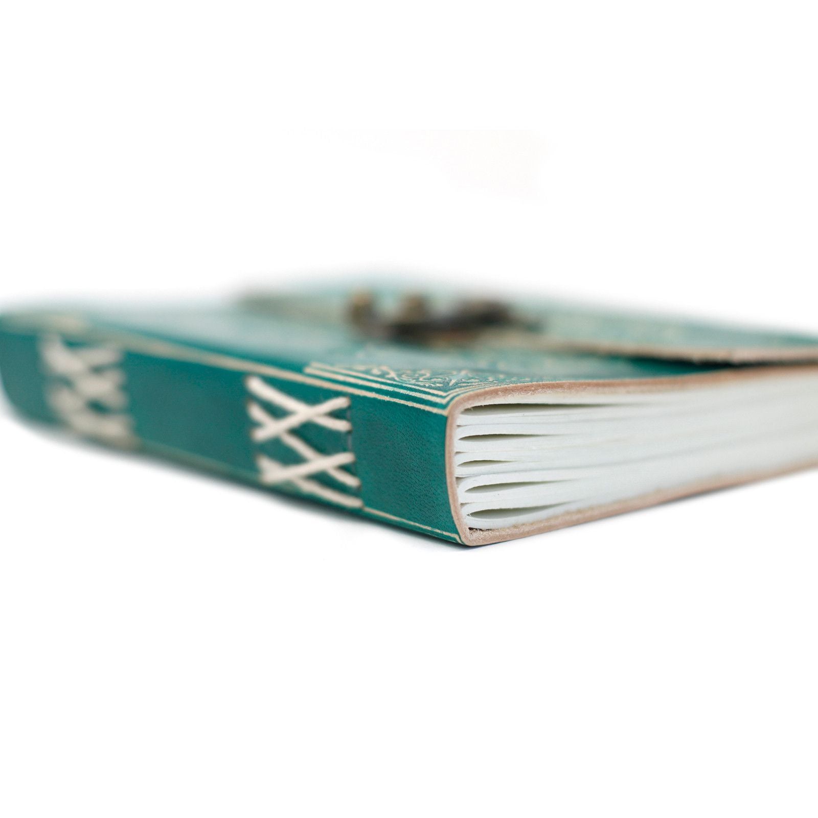 From the moss-lined archives of mindful scribes, a journal bound in balance and breath. This handcrafted notebook, wrapped in forest-green leather, bears the aura of quiet strength and contemplative charm. Its cover is adorned with burnt edges, metal clasps, and a wraparound thong, sealed with an antique-style lock—a tactile invitation to protect your thoughts, dreams, and whispered truths.