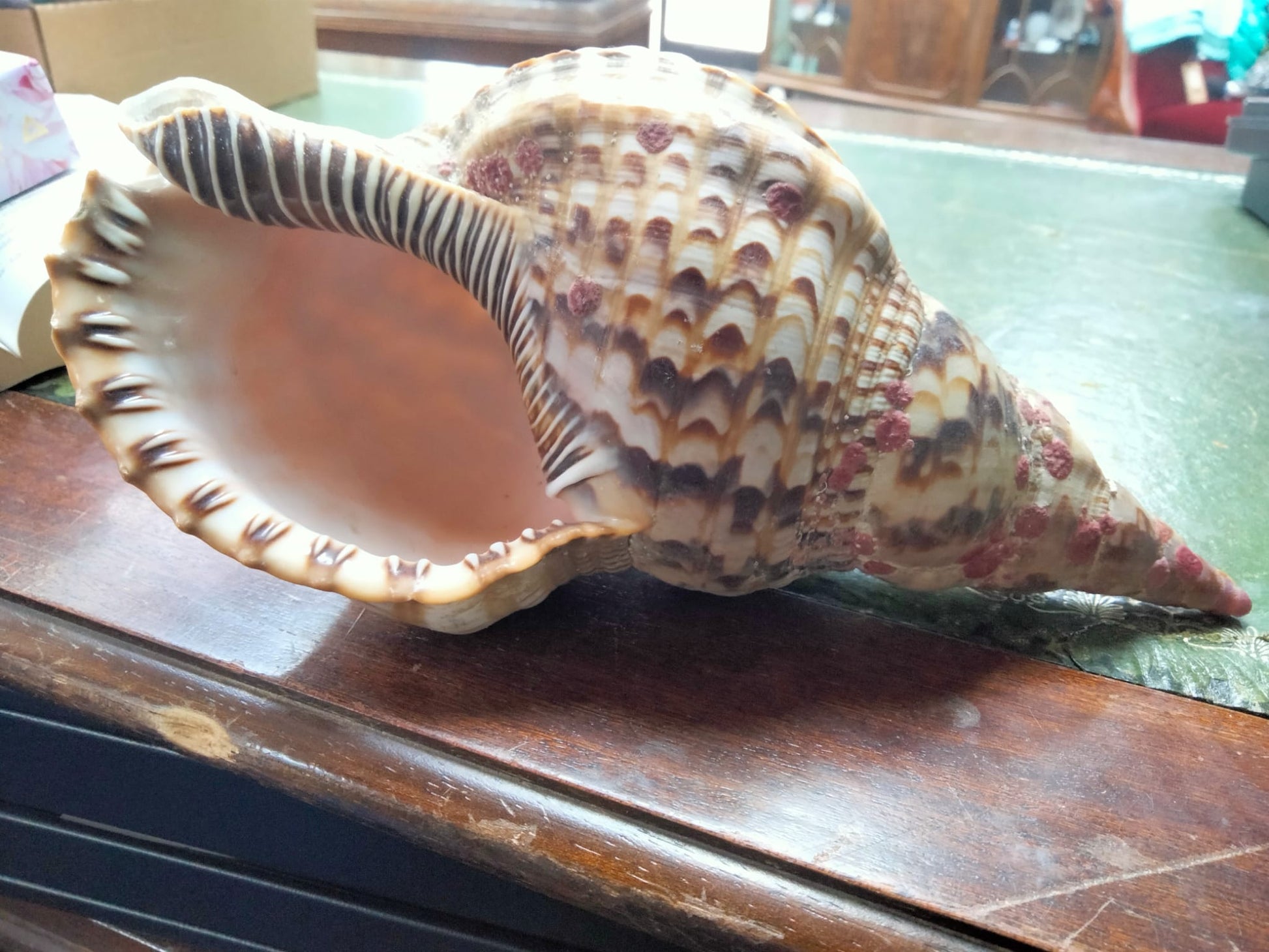 A brilliant example of a Triton's Trumpet seashell. Brilliant as an ornament