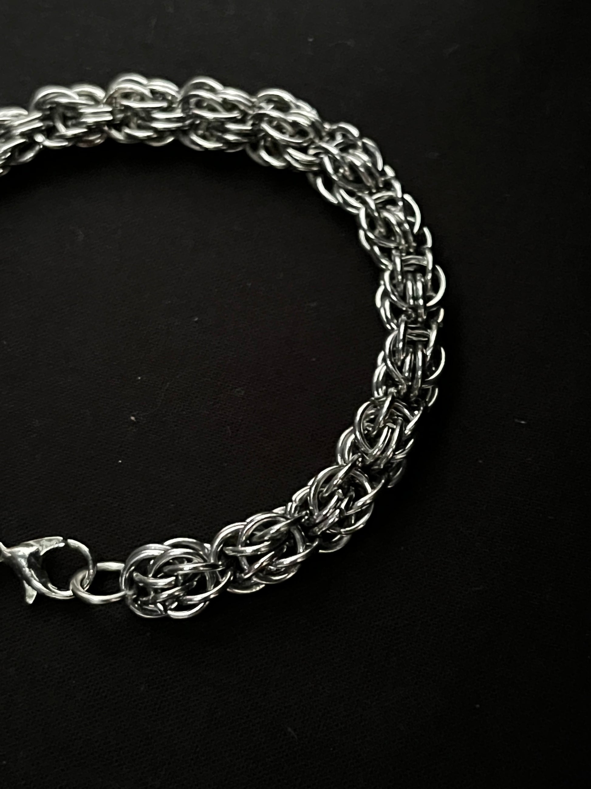 The Vale Bracelet is a handcrafted chainmail piece designed to move fluidly with you. Individually linked by hand, the interwoven rings create a smooth, tactile texture that feels both strong and effortless on the wrist. Minimal yet bold, it’s a versatile statement that layers beautifully or stands confidently on its own.